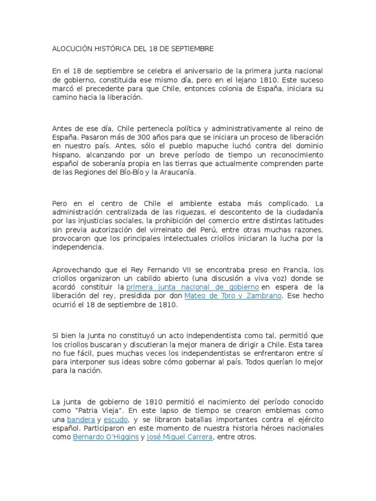 En santiago (chile) se reúne la primera junta de gobierno, primer antecedente para la independencia y actualmente celebrada como fecha de las fiestas . El historiador y profesor de la . Historiador entrega claves para entender la tradición de fiestas patrias. Arturo alessandri promulga una nueva constitución política que fortalece las atribuciones del ejecutivo poniendo fin al régimen parlamentario. Descubre las efemérides de hoy 18 de septiembre, el santo que se celebra, el signo del zodiaco que le corresponde y qué pasó un día como hoy .